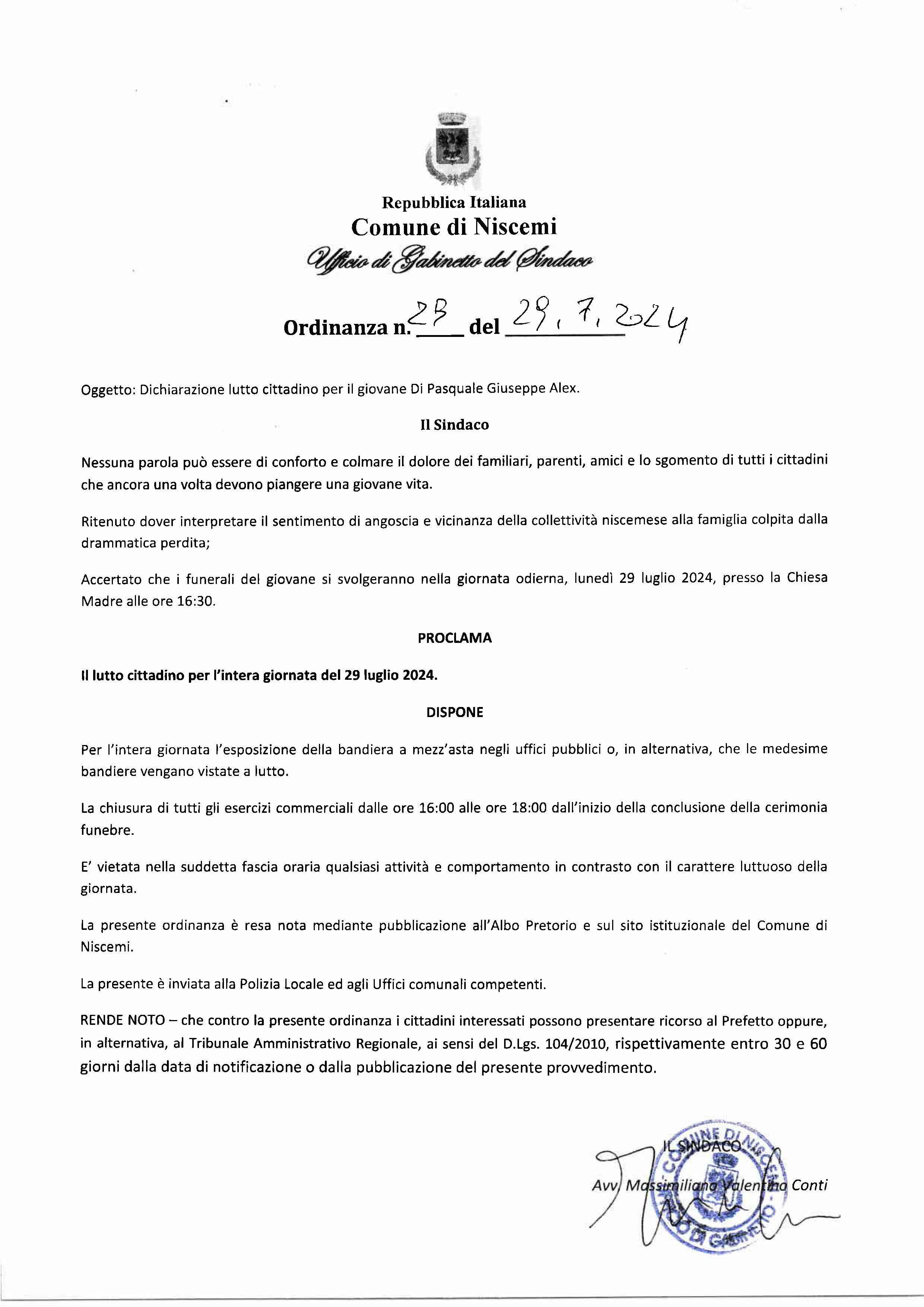 Lutto cittadino 29.07.2024 - Di Pasquale Giuseppe Alex